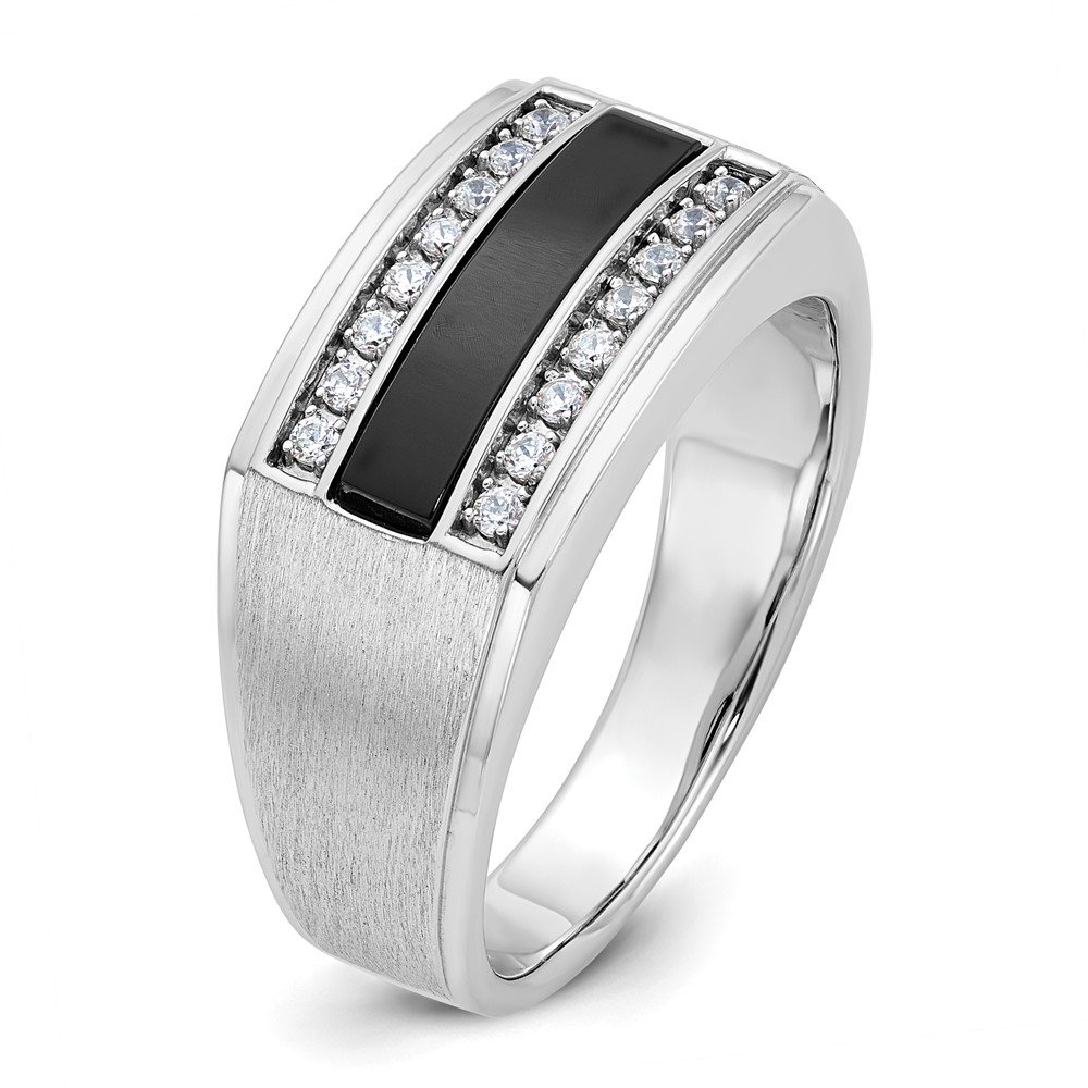 IBGoodman 10k Men’s Polished and Satin Onyx and 1/6 Carat A Quality Diamond Ring
