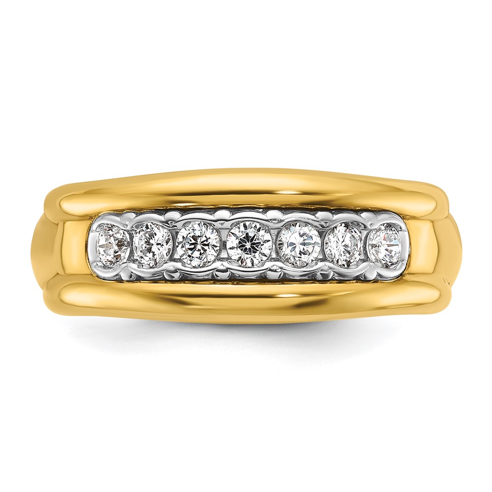 IBGoodman 10k Two-tone Men’s Polished and Grooved Bezel Set 7-Stone 1/2 Carat A Quality Diamond Ring