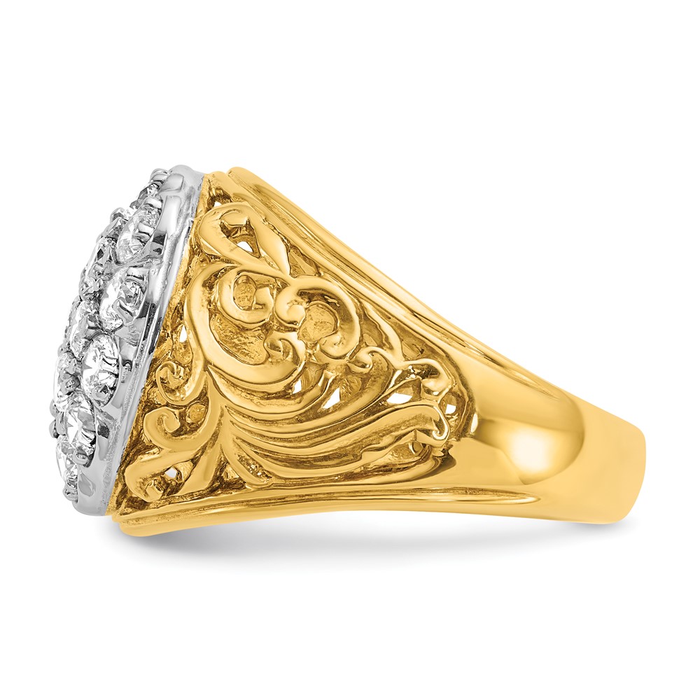 IBGoodman 14k Two-tone Men’s Polished Filigree 2 Carat AA Quality Diamond Cluster Ring