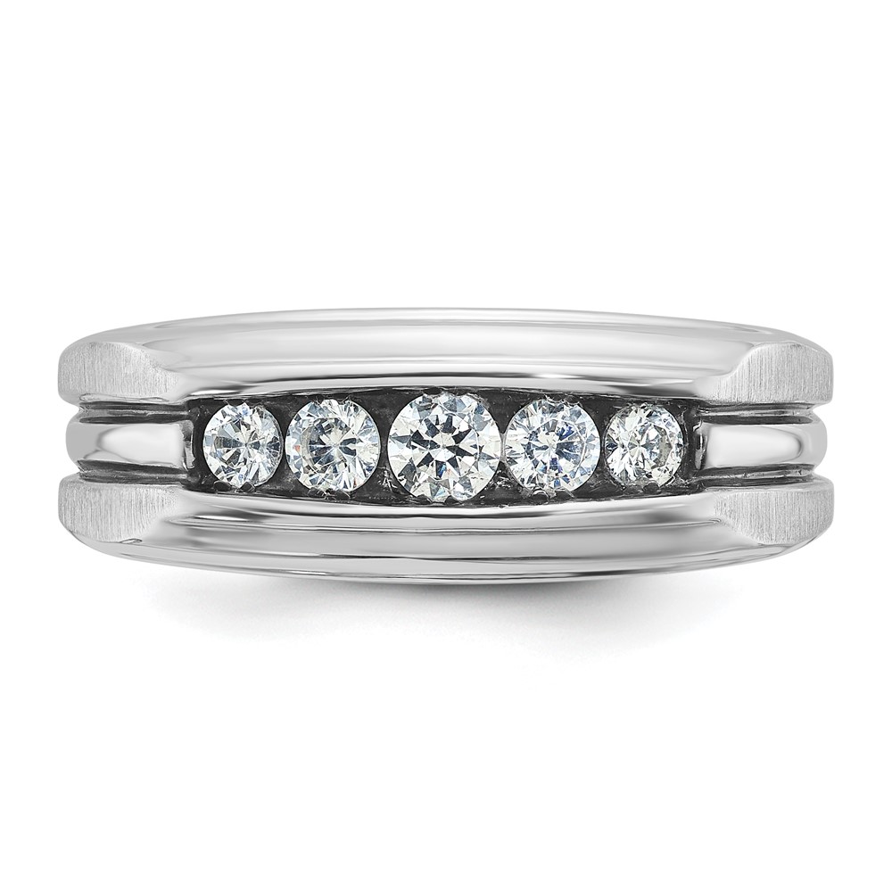 IBGoodman 10k White Gold with Black Rhodium Men’s Polished Satin and Grooved 5-Stone 1/2 Carat A Quality Diamond Ring