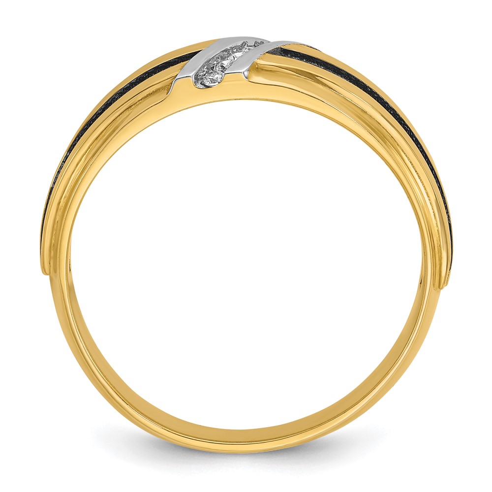 IBGoodman 10k with Black and White Rhodium Men’s Polished Satin and Grooved 1/20 Carat A Quality Diamond Ring