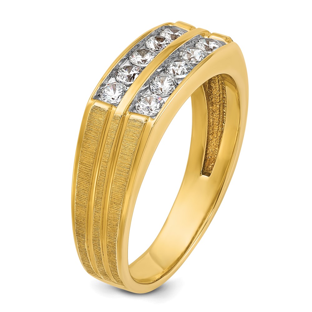 IBGoodman 14k Men’s Polished Satin and Grooved 2-Row 5/8 Carat AA Quality Diamond Ring
