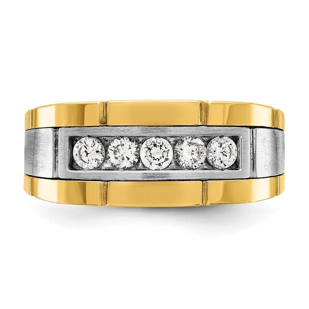 IBGoodman 14k Two-tone 1/2 carat Lab Grown Diamond VS/SI+ G+ Five Stone Complete Polished and Satin Men’s Ring