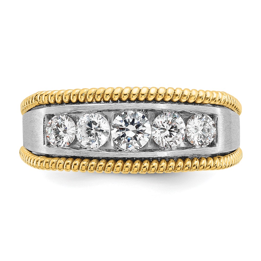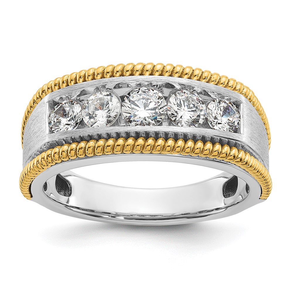 IBGoodman 14k Two-tone 1 carat Lab Grown Diamond VS/SI+ G+ Five Stone Complete Polished Satin and Textured Men’s Ring