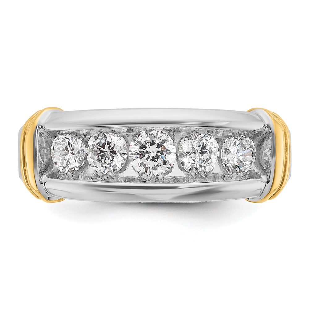 IBGoodman 14k Two-tone Men’s Polished and Grooved 5-Stone 1 Carat AA Quality Diamond Ring