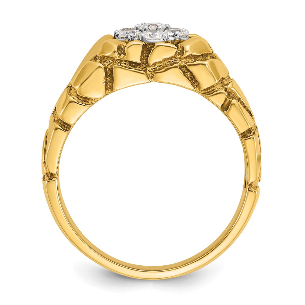 IBGoodman 14k Two-tone Men’s Polished and Nugget Textured Round 1/2 Carat AA Quality Diamond Cluster Ring