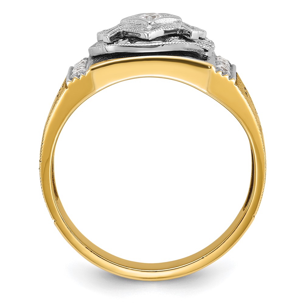IBGoodman 14k Two-tone Men’s Polished and Textured with Blue and Black Enamel Diamond Blue Lodge Master Masonic Ring