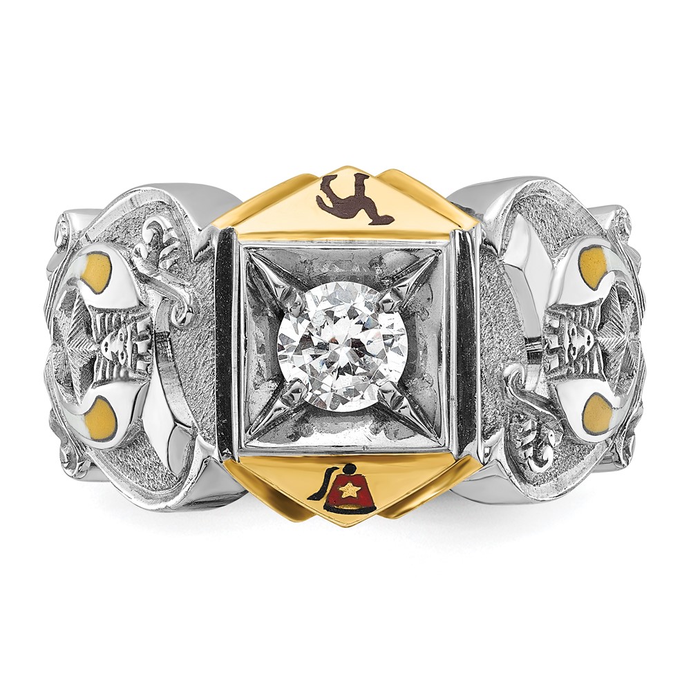 IBGoodman 14k Two-tone Men’s Polished and Textured with Multi-color Enamel and Diamond Masonic Shriner’s Ring