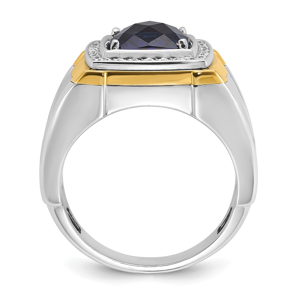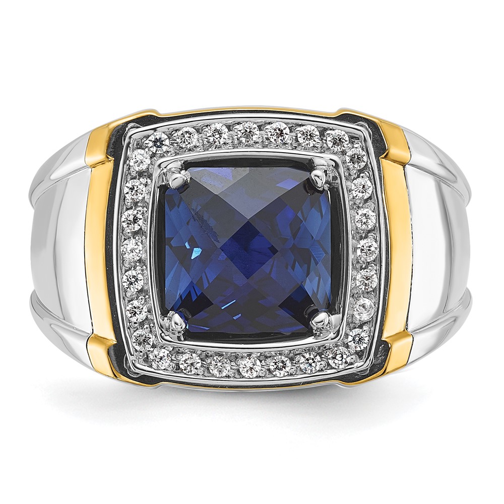 IBGoodman 14k Two-tone Men’s Polished Lab Created Sapphire and AA Quality Diamond Ring