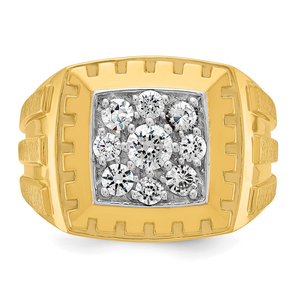 IBGoodman 14k Two-tone Men’s Polished Satin and Grooved 1 Carat AA Quality Diamond Cluster Ring