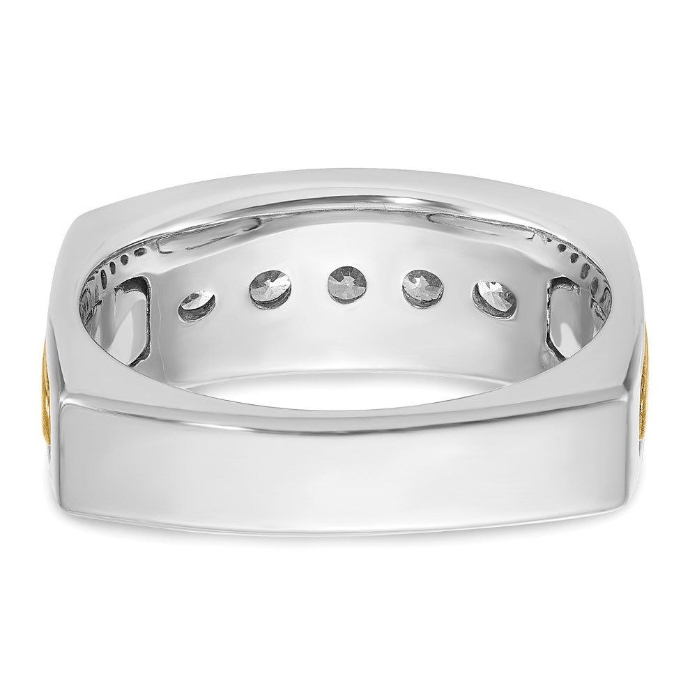 IBGoodman 14k Two-tone Men’s Polished Satin and Grooved 5-Stone 1/2 Carat AA Quality Diamond Square Ring
