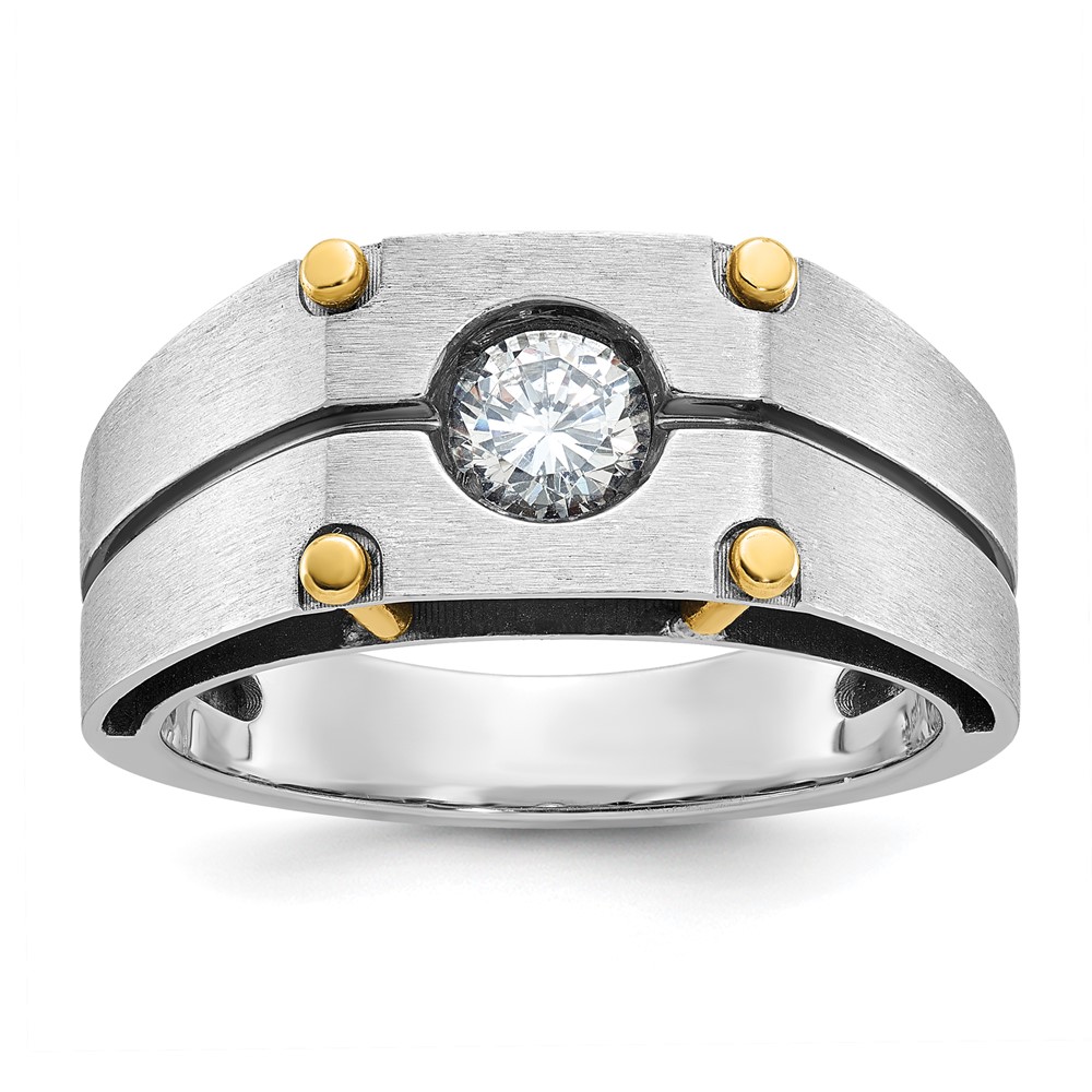 IBGoodman 14k Two-tone with Black Rhodium 1/2 carat Lab Grown Diamond VS/SI+ G+ Complete Polished and Satin Men’s Ring