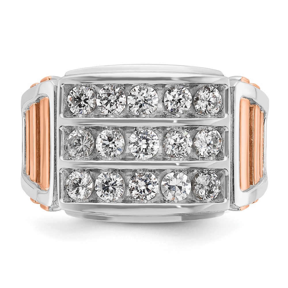 IBGoodman 14k White and Rose Gold Men’s Polished and Cut-Out 3-Row 1 1/5 Carat AA Quality Diamond Ring