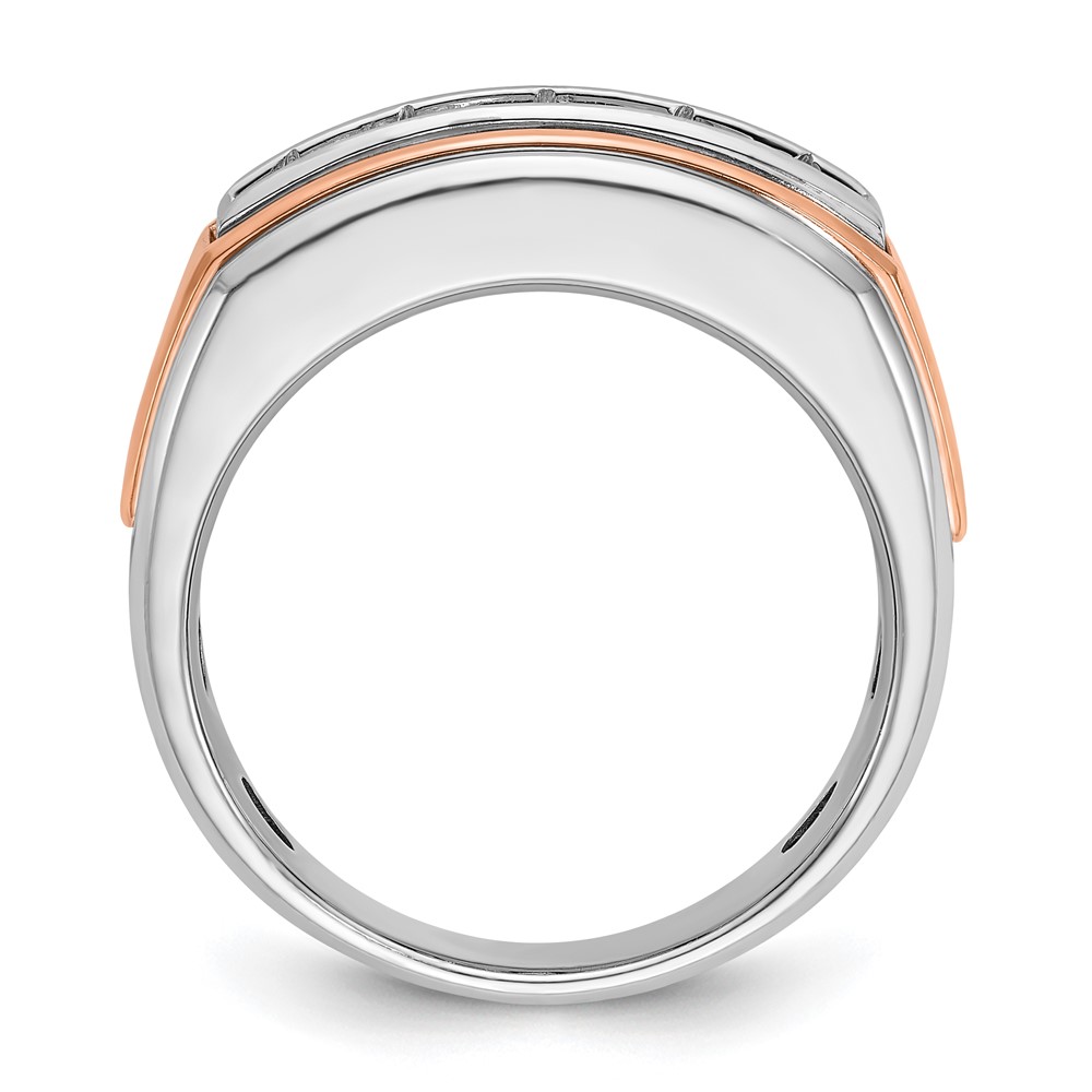 IBGoodman 14k White and Rose Gold Men’s Polished and Grooved 5-Stone 1 Carat AA Quality Diamond Ring