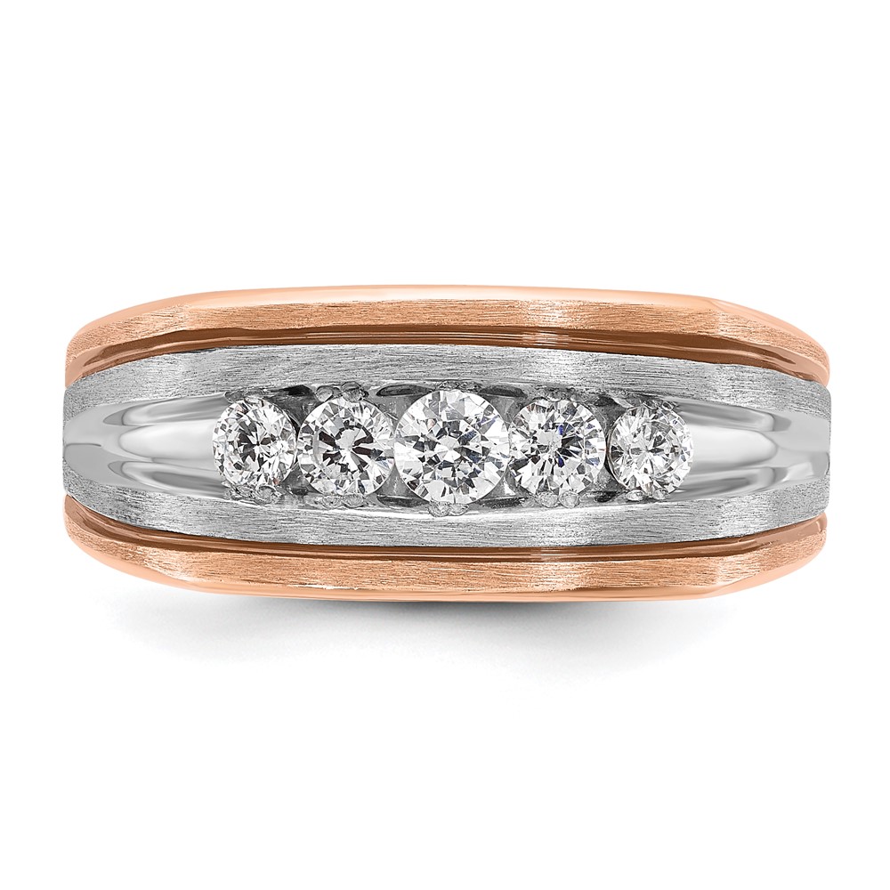 IBGoodman 14k White and Rose Gold Men’s Polished Satin and Grooved 5-Stone Ring Mounting