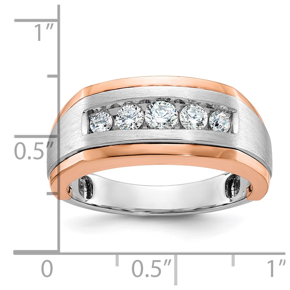 IBGoodman 14k White and Rose Gold Men’s Polished Satin and Grooved 5-Stone Ring