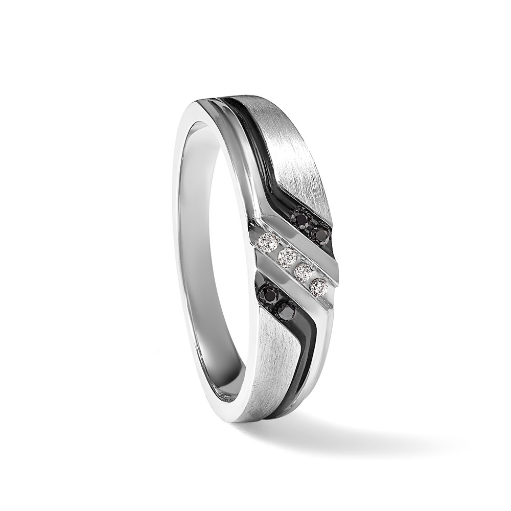 IBGoodman 14k White Gold 1/8 carat Lab Grown Diamond VS/SI+ G+ and 1/8 carat Black Mined Diamonds Complete Polished Satin and Grooved Men’s Ring