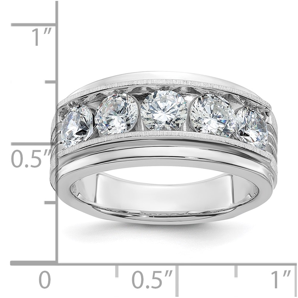 IBGoodman 14k White Gold 2 carat Lab Grown Diamond VS/SI+ G+ Five Stone Complete Polished Satin and Grooved Men’s Ring
