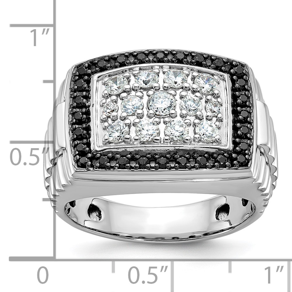 IBGoodman 14k White Gold Men’s Polished and Textured 1 Carat Black and White Diamond Cluster Ring