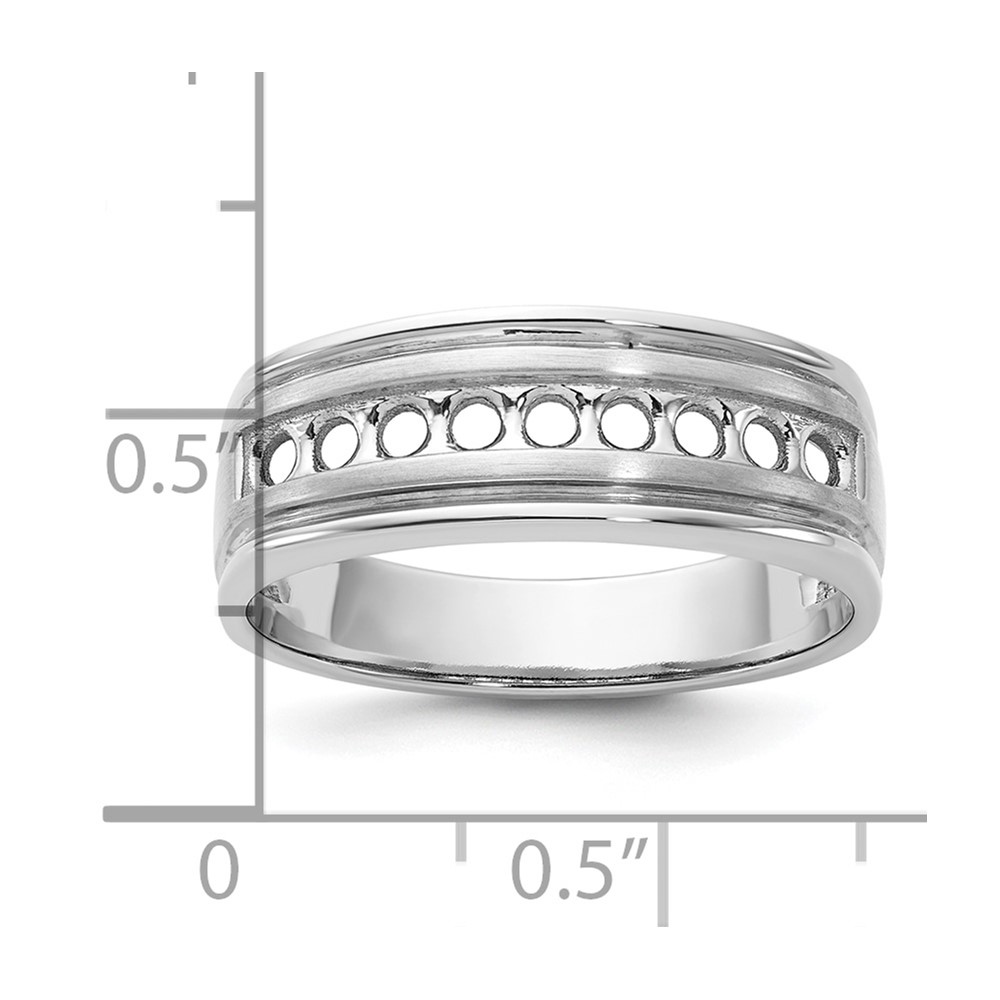 IBGoodman 14k White Gold Nine Stone Polished Brushed and Grooved Ring Mounting