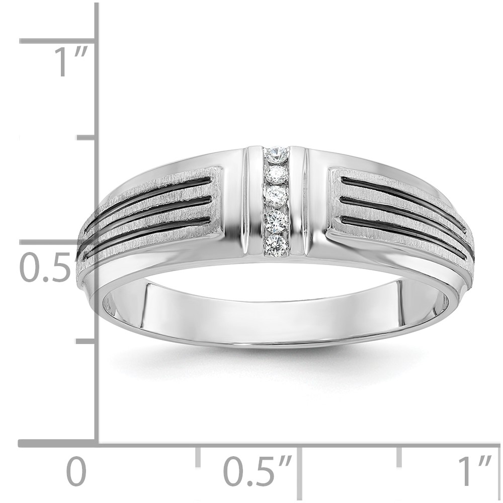 IBGoodman 14k White Gold Polished Satin and Grooved Five Stone Men’s Ring Mounting