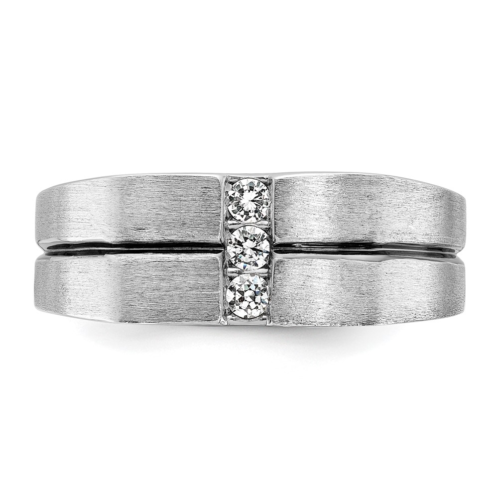 IBGoodman 14k White Gold Satin and Grooved Three Stone Men’s Ring Mounting