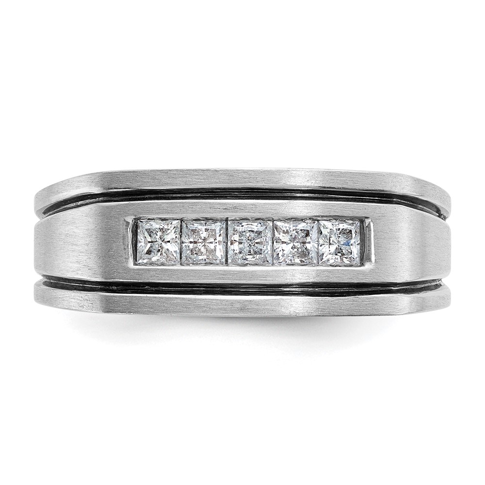 IBGoodman 14k White Gold with Black Rhodium Men’s Polished Satin and Grooved Square 5-Stone 1/2 Carat AA Quality Diamond Ring
