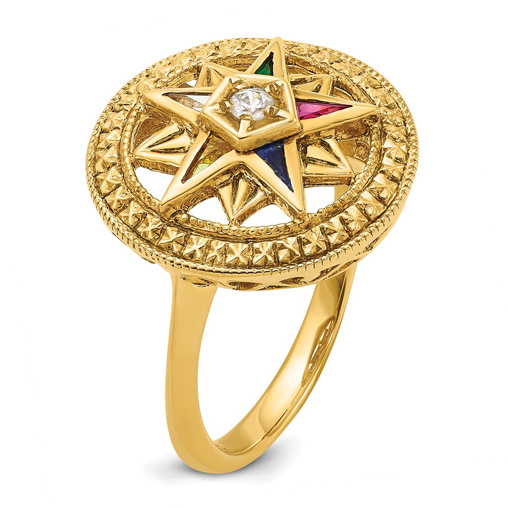 IBGoodman 14k Women’s Polished and Textured with Multi-color CZ and Diamond Eastern Star Masonic Ring
