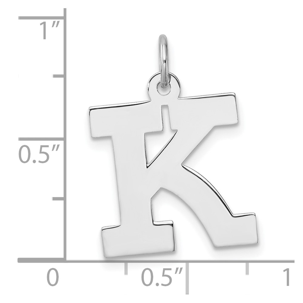 Large Sterling Silver Rhodium-plated Block Letter K Initial Charm