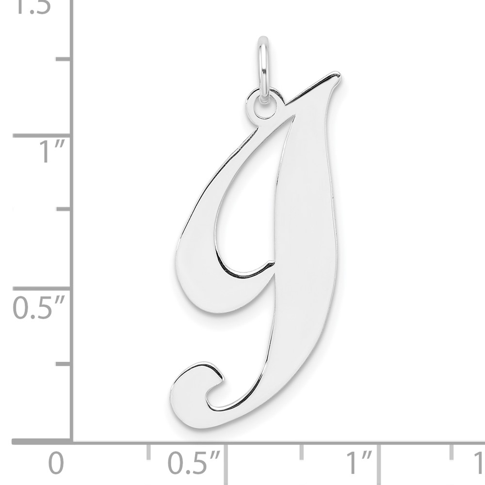 Large Sterling Silver Rhodium-plated Fancy Script Letter I Initial Charm