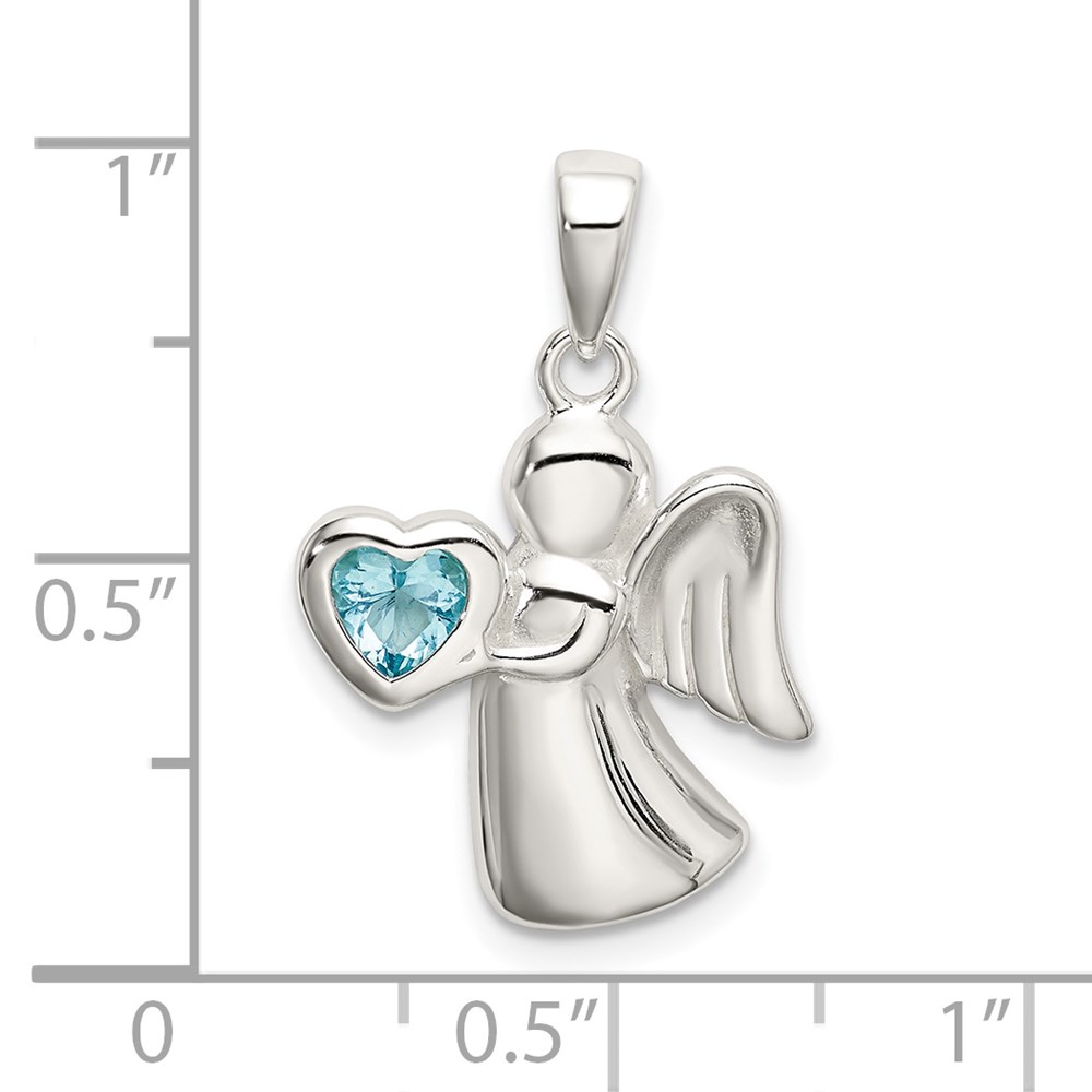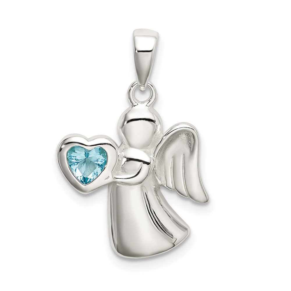 Sterling Silver Angel w/Light Blue CZ Heart Pendant