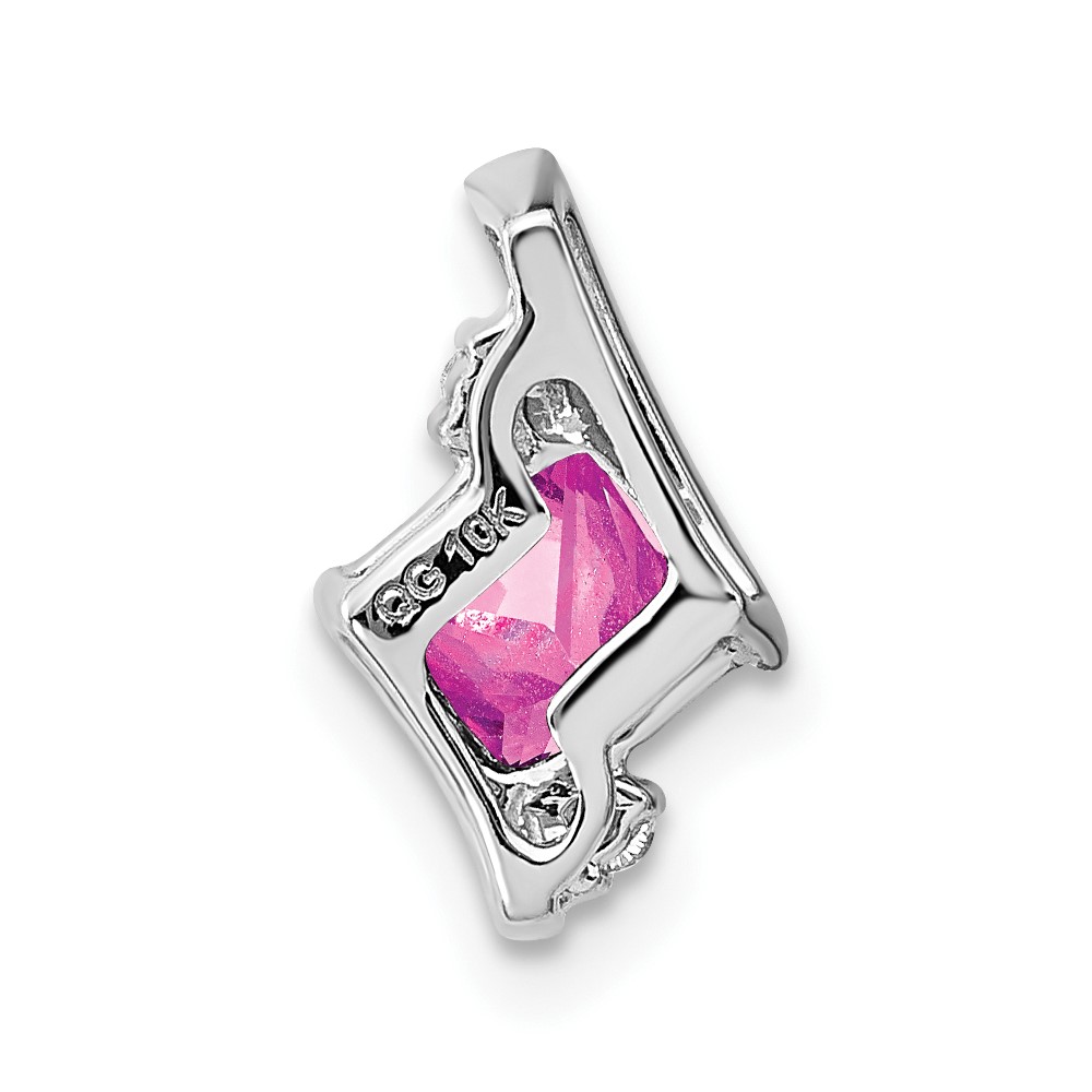 14K White Gold Polished Diamond and Pink Tourmaline Heart Chain Slide