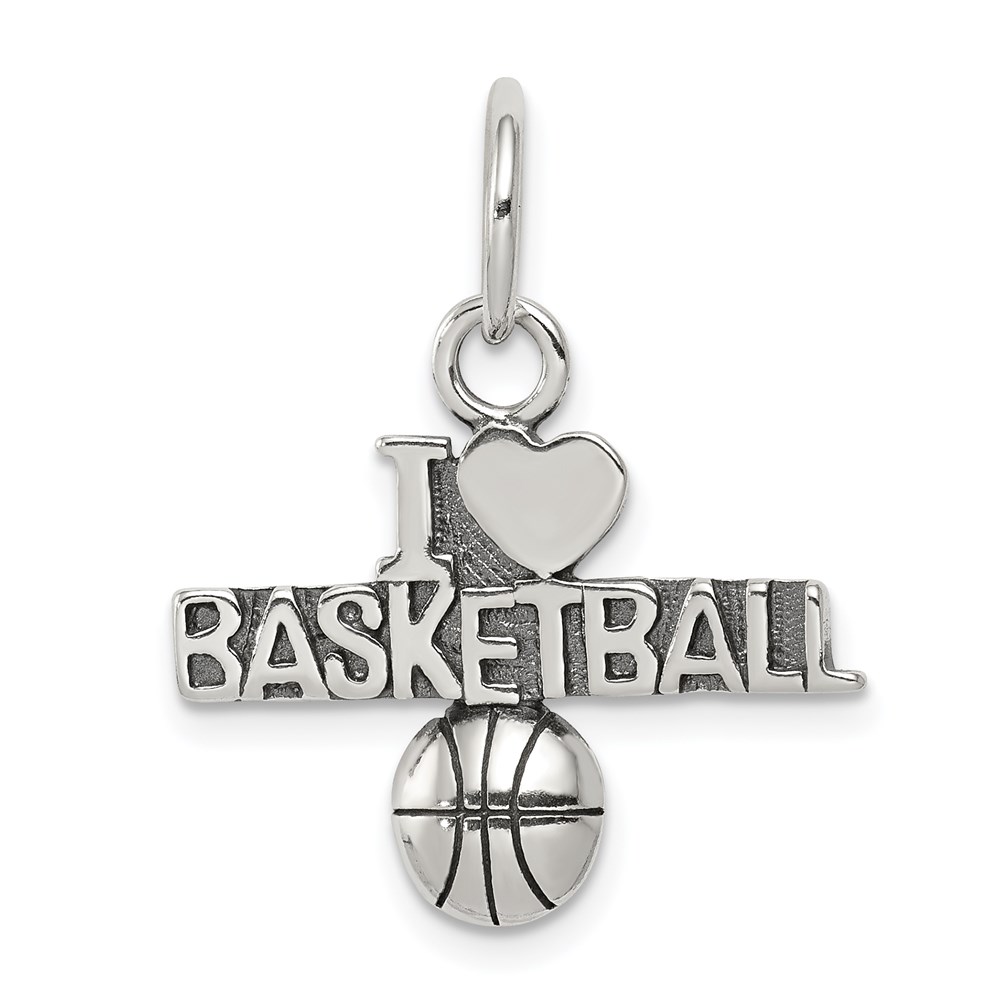 Sterling Silver Antique I (heart) Basketball Charm