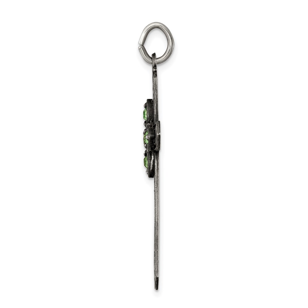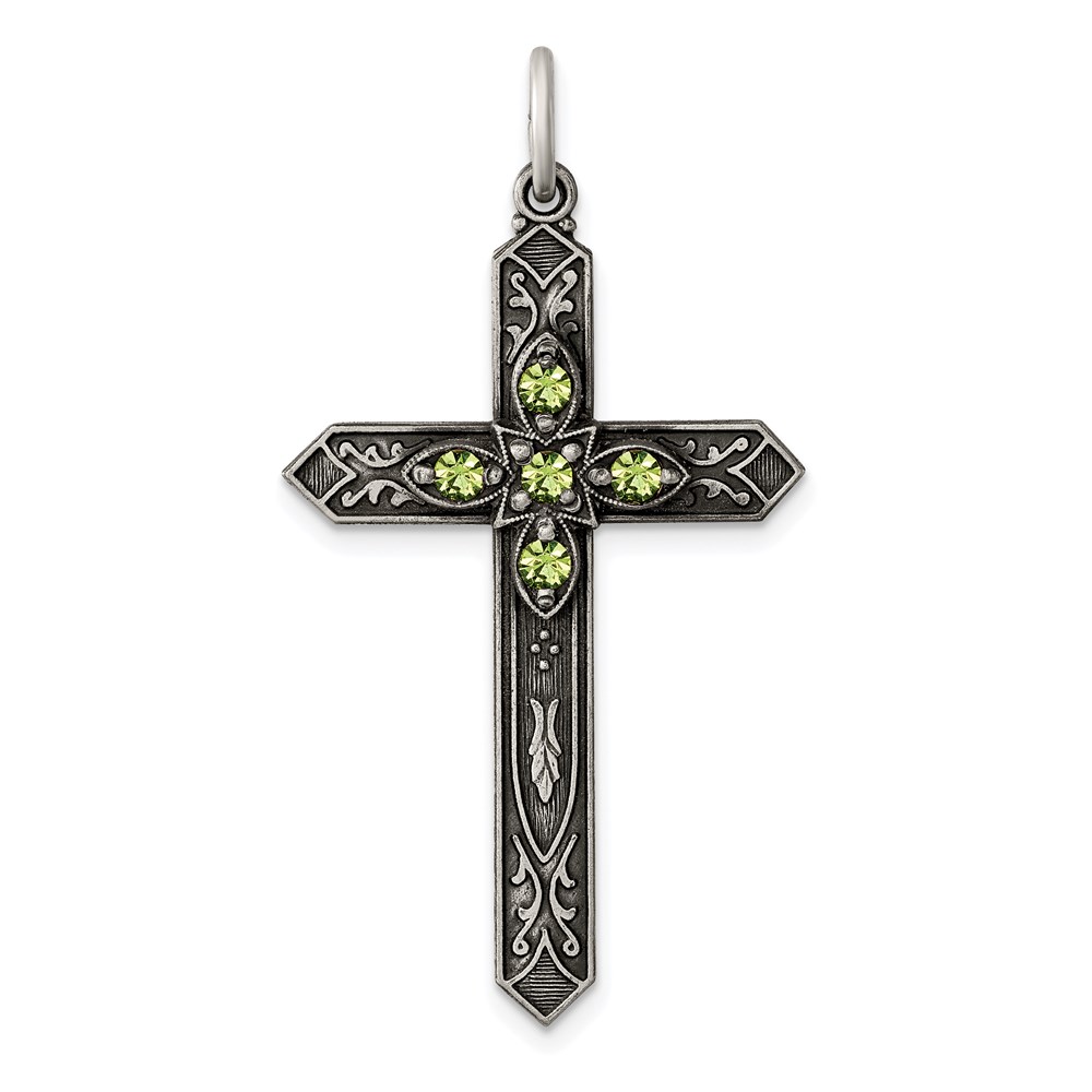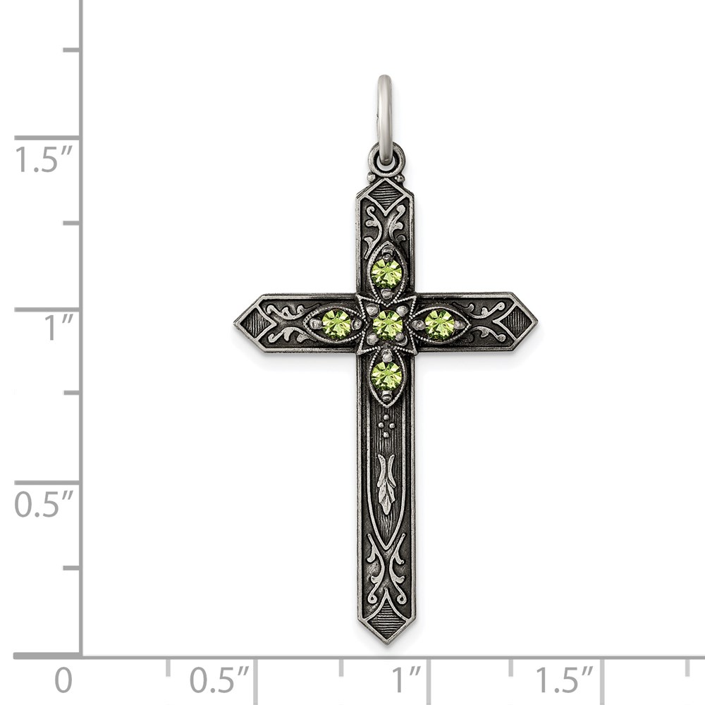 Sterling Silver Antiqued August Glass Birthstone Cross Pendant