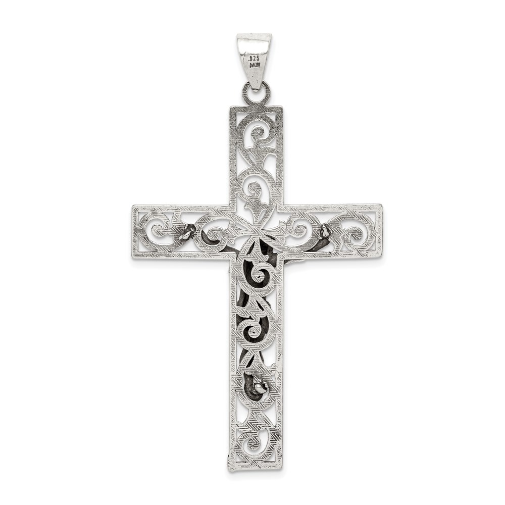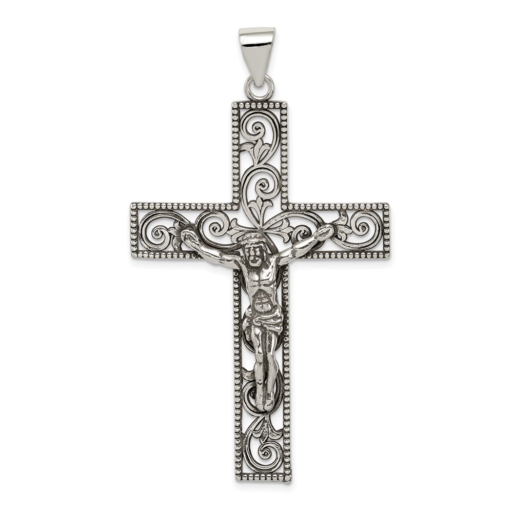 Sterling Silver Antiqued Beaded Filigree Crucifix Pendant