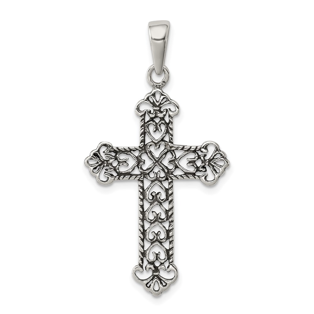 Sterling Silver Antiqued Fleur de lis Cross Pendant