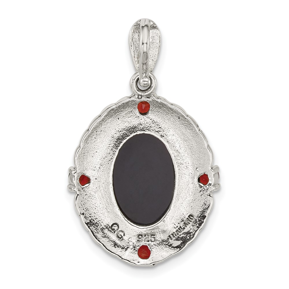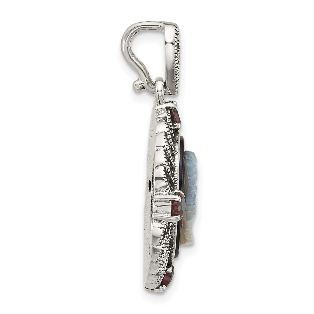 Sterling Silver Antiqued Marcasite and Garnet with Black Agate and Mother of Pearl Cameo Pendant