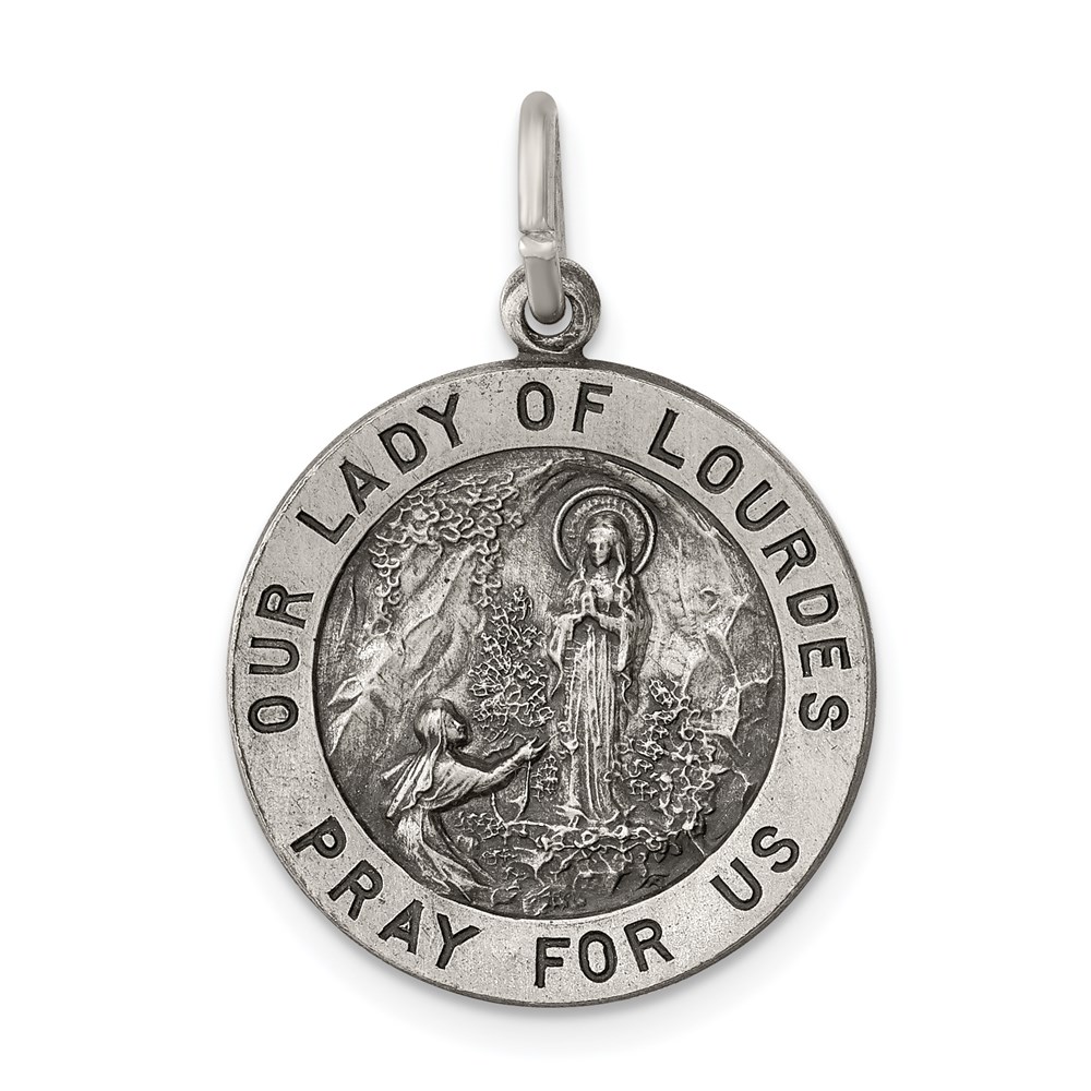 Sterling Silver Antiqued Our Lady of Lourdes Medal