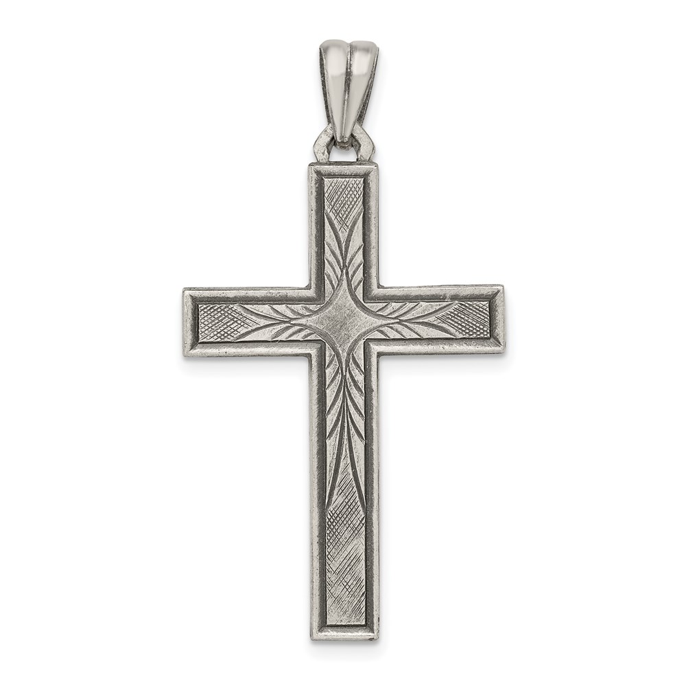 Sterling Silver Antiqued, Polished and Brushed Latin Cross Pendant