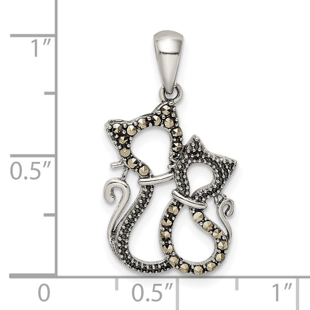 Sterling Silver Antiqued Polished Marcasite Cats Pendant