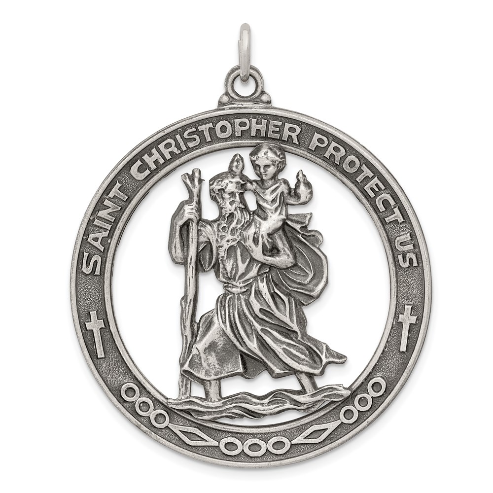 Sterling Silver Antiqued Saint Christopher Medal