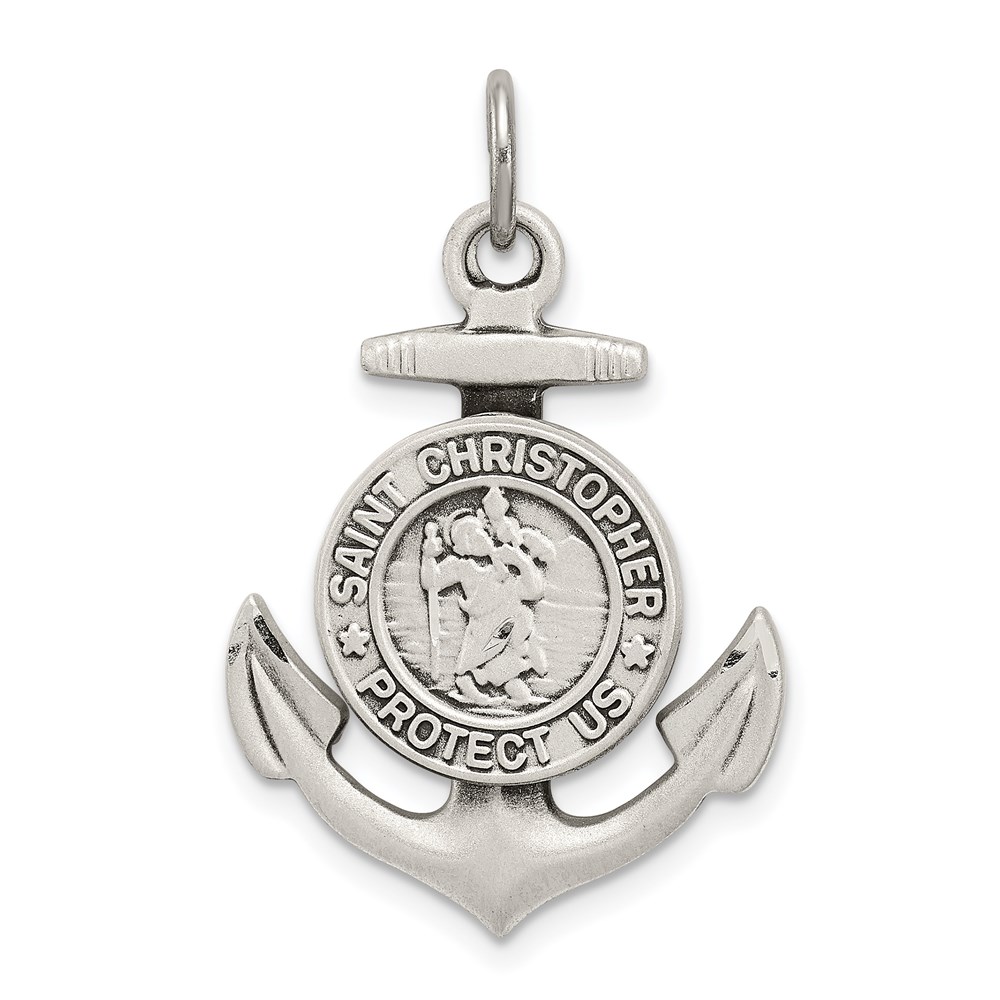 Sterling Silver Antiqued Satin St Christopher Anchor Medal Pendant