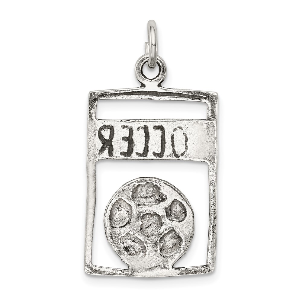 Sterling Silver Antiqued Soccer Rectangle Pendant