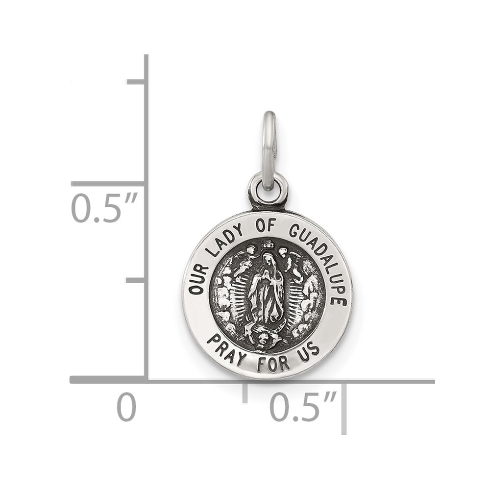 Sterling Silver Antiqued Solid Lady of Guadalupe Medal