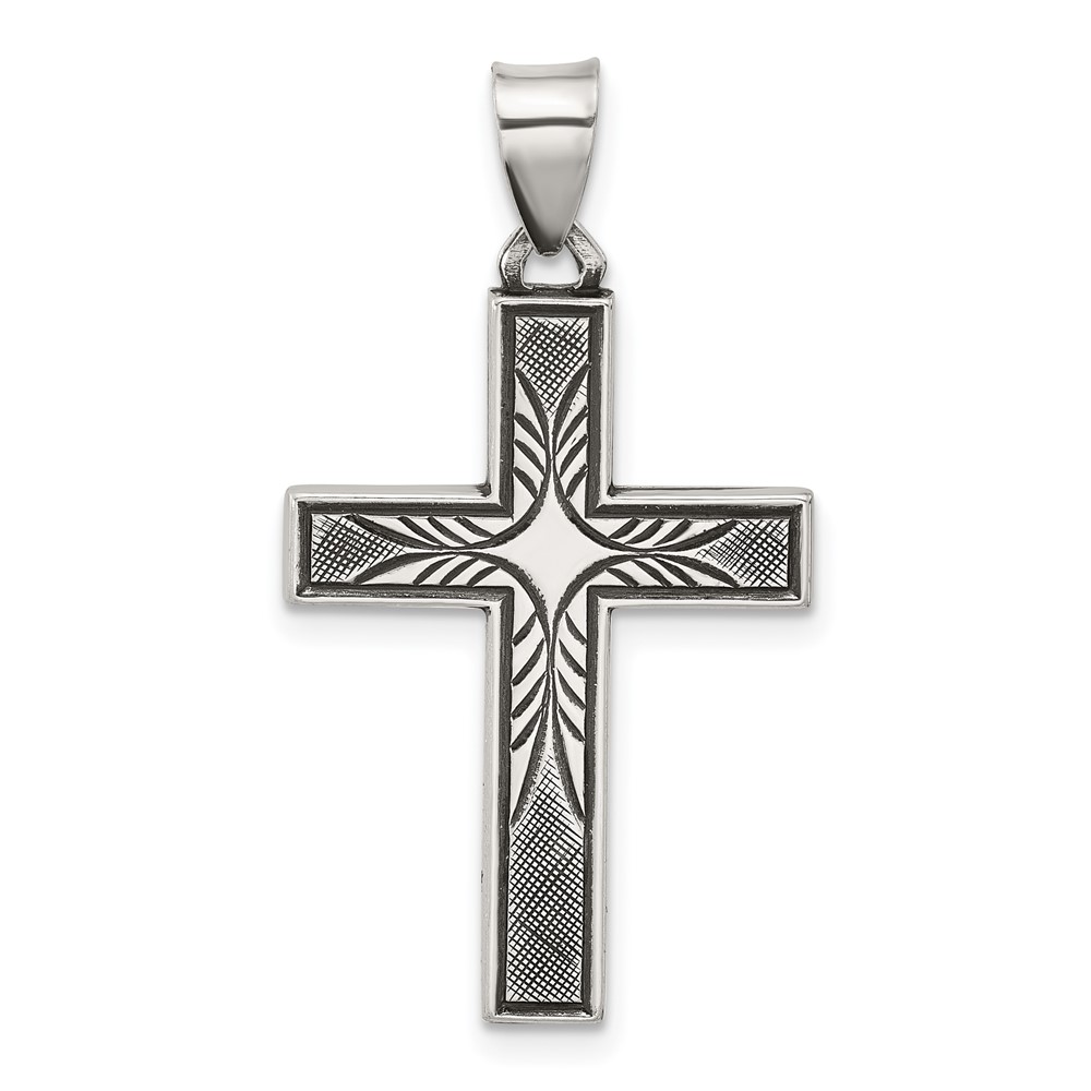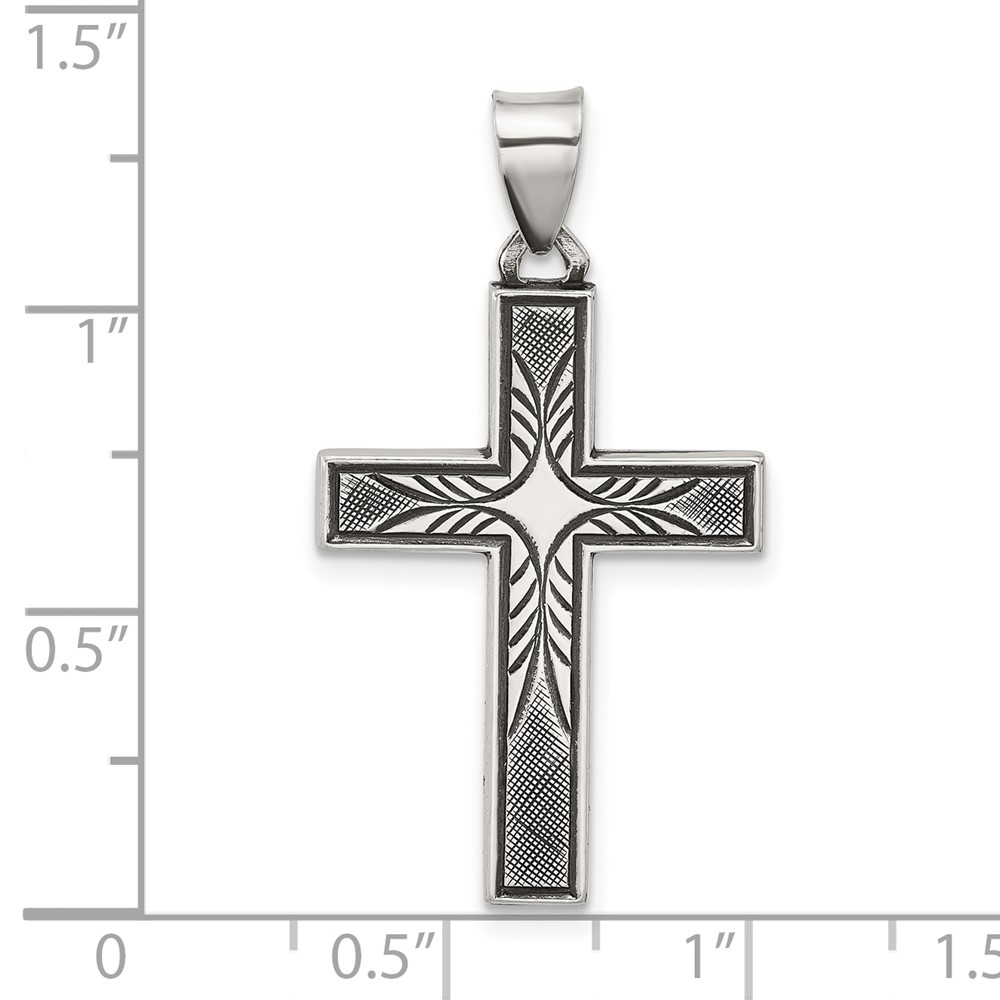 Sterling Silver Antiqued Solid Textured Cross Pendant