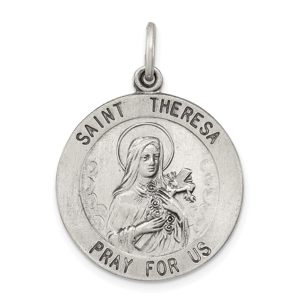 Sterling Silver Antiqued St. Theresa Medal