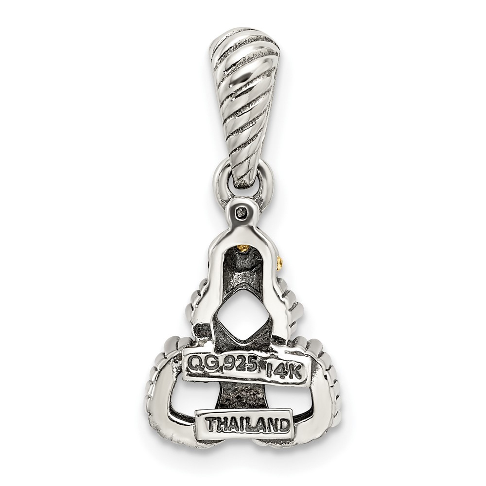 Sterling Silver Antiqued w/14k 3-stone w/Diamond Mothers Pendant Semi-Mount