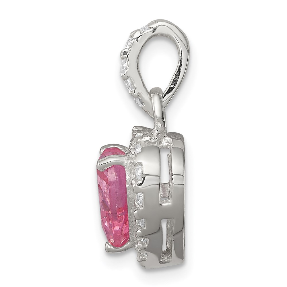 Sterling Silver Clear CZ and Pink CZ Heart Pendant
