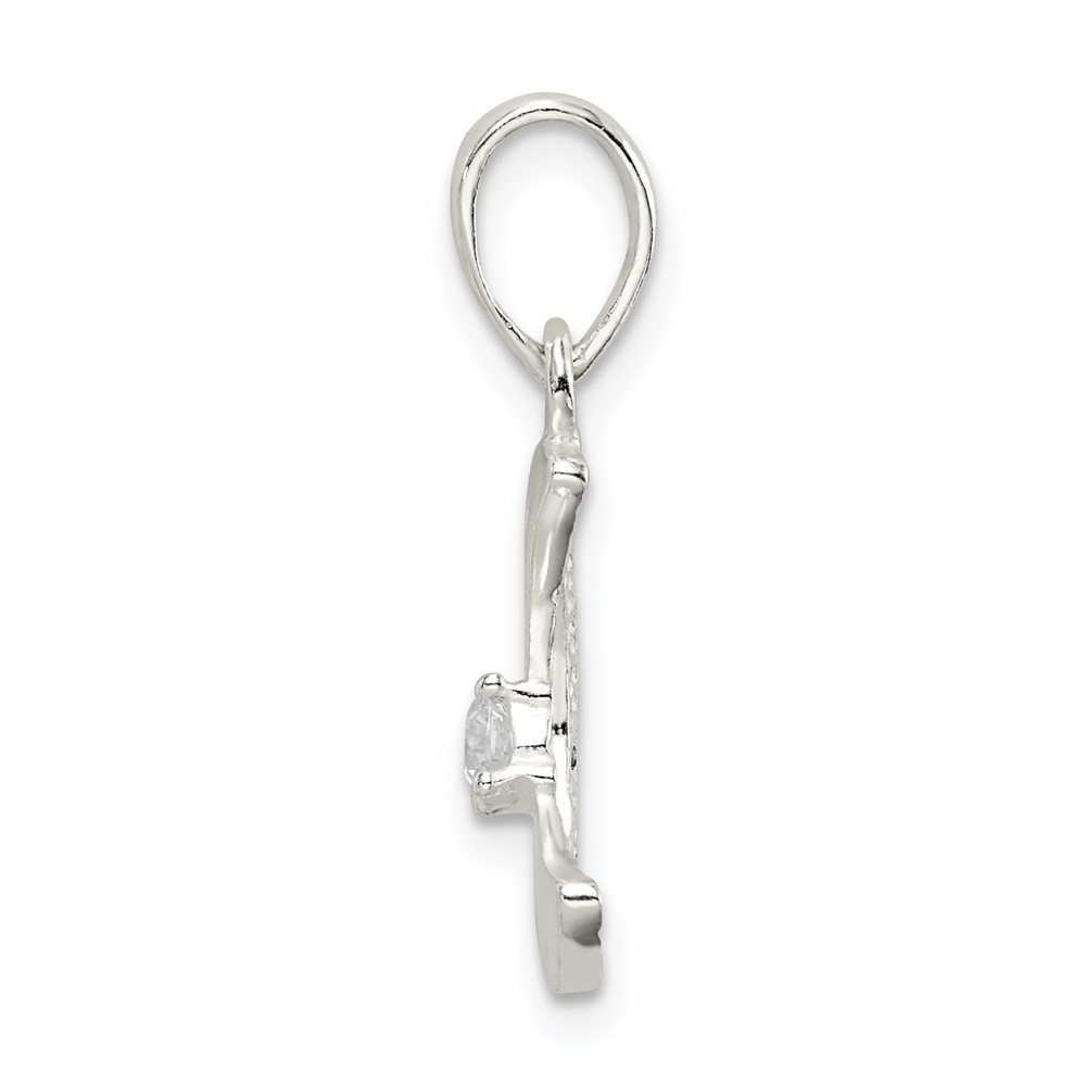Sterling Silver & CZ Polished Moon Pendant