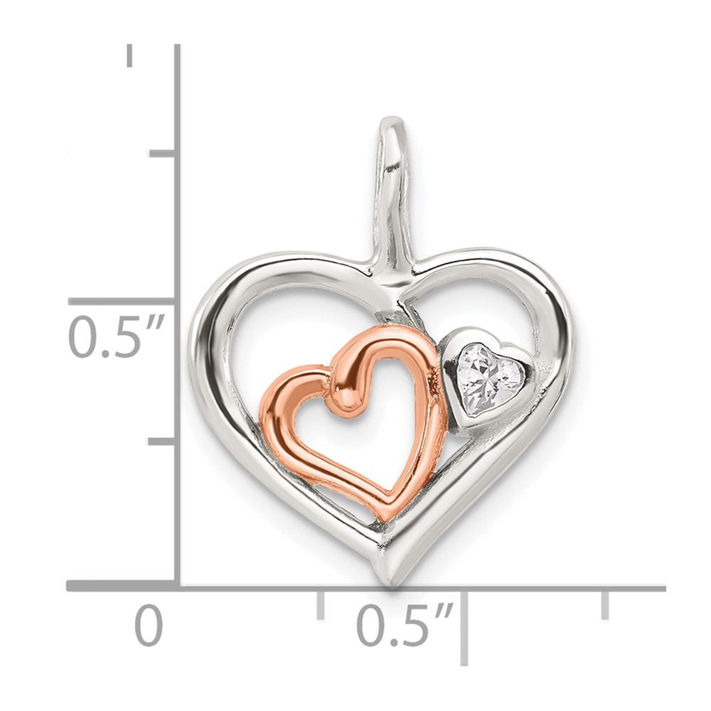 Sterling Silver E-Coat and Rose-tone CZ Hearts Pendant